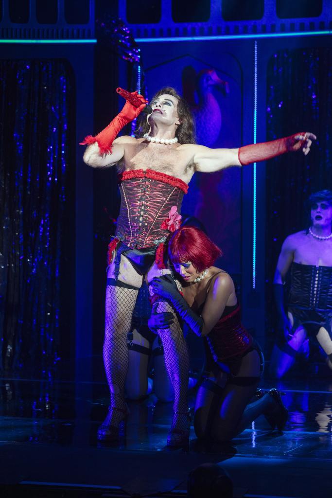 Production wise it’s as excellent as it’s ever been, Hugh Durrant’s set design captures the nostalgia of the piece bringing a nice touch of cinema to the show, and this is boosted by Nick Richings brilliant lighting design. Musically the show really rocks thanks to musical director Josh Sood’s excellent five piece on stage band coupled with Gareth Owen’s sound design ensures every note, lyric and comedy line is heard in the massive auditorium of the playhouse. Sue Blane’s costume design is pitch perfect capturing the shows iconic look with ease and well done the men in the company for dawning those very high heels and showing their skills so well.